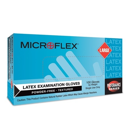 Microflex® L22 Latex Gloves, Powder-Free, 5.1 mil, Natural - 1000/Case, Microflex, GROUP-L22, Material: Latex Color: Blue Powder-Free: Yes Cuff Style: Beaded AQL: 1.5 Length: 9.6" Standard Palm Thickness: 0.13 mm Finger T