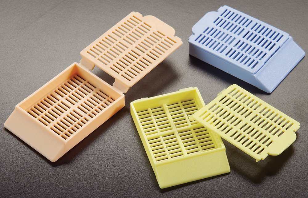 Histosette® I Embedding and Biopsy Cassettes hold tissue specimens during processing, as well as in storage files. Molded from a special high density acetal polymer, these cassettes keep specimens safely submerged in liquid and are totally resistant to the chemical action of histological solvents. The efficient flow-through designs maximize fluid exchange and ensure proper drainage.