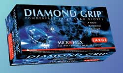 Experienced professionals depend on Diamond Grip Gloves for resistance to a broad range of chemical and biological hazards. The Diamond Grip glove is the benchmark in strength and durability in latex gloves. Thicker than typical latex gloves, Diamond Grip gloves provide enhanced protection, especially in the fingertips where protection is critical.