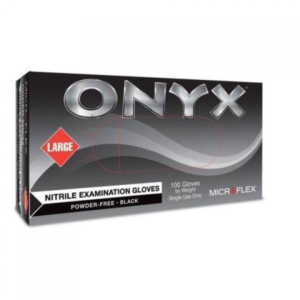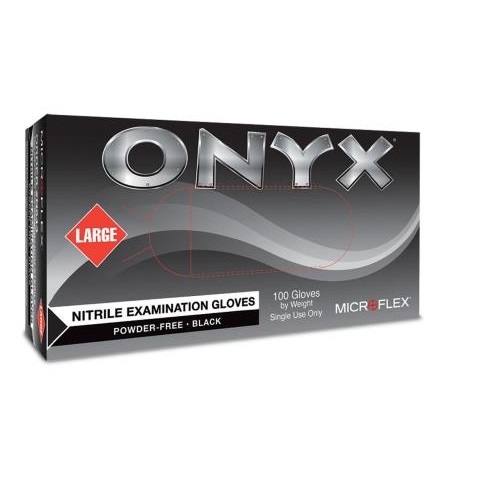 Microflex N64 ONYX Nitrile Gloves, 3.5 mil, Textured, Black - 100/Box, 1000/Case