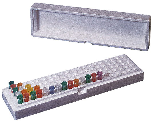 The Styrofoam Box is alphanumerically labeled for the quick and easy indexing of microtubes. A snug-fitting lid ensures the security of the box contents. A fingergrip feature makes the box easy to open. Constructed of recyclable Styrofoam. Measures 13 x 3-3/4 x 2-1/2¯ .