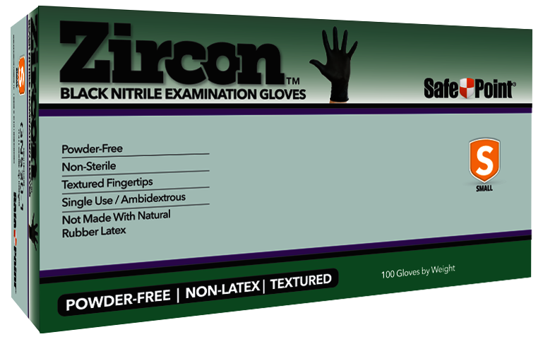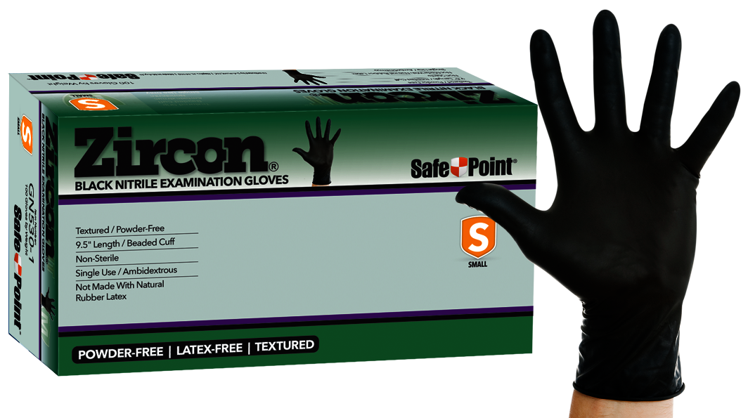 SafePoint GN530 Zircon Disposable Black Nitrile Gloves, 5.1 mil (Finger), Powder Free - 100/Box, 10 Boxes/Case, SafePoint, GROUP-GN530, Nitrile Powder-Free Non-Sterile Textured Fingertips Thickness: 5.1 mil (Finger) Te