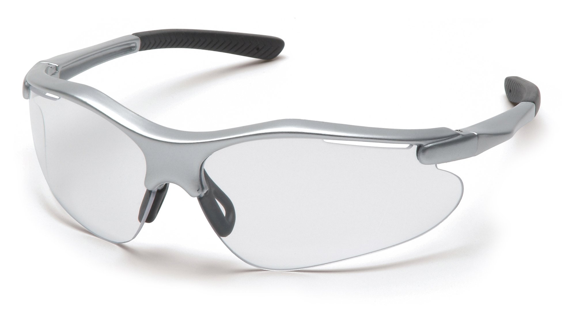 Adjustable nose pad provides a comfortable fit for a broad range of bridge sizes. Lightweight sports styling contours to the face to provide maximum protection. The vented lens allows air to flow away to prevent fogging. Anti-scratch lenses.