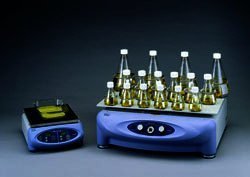 The small MaxQ 2000 and the larger MaxQ 3000 Open-Air Platform Shakers each employ a triple eccentric drive that handles heavier loads, provides smooth, uniform agitation of full or unbalanced loads, even at high speeds, and enables 24-hour operation. Each will operate in environmental temperatures of 32° to 104°F (0° to 40°C) and 20% to 80% relative humidity (noncondensing), making them ideal for use in incubators, warm rooms, environmental chambers and refrigerators. Leveling feet increase stability at high load-speed combinations. Each model is available with either an analog or a digital operating system.